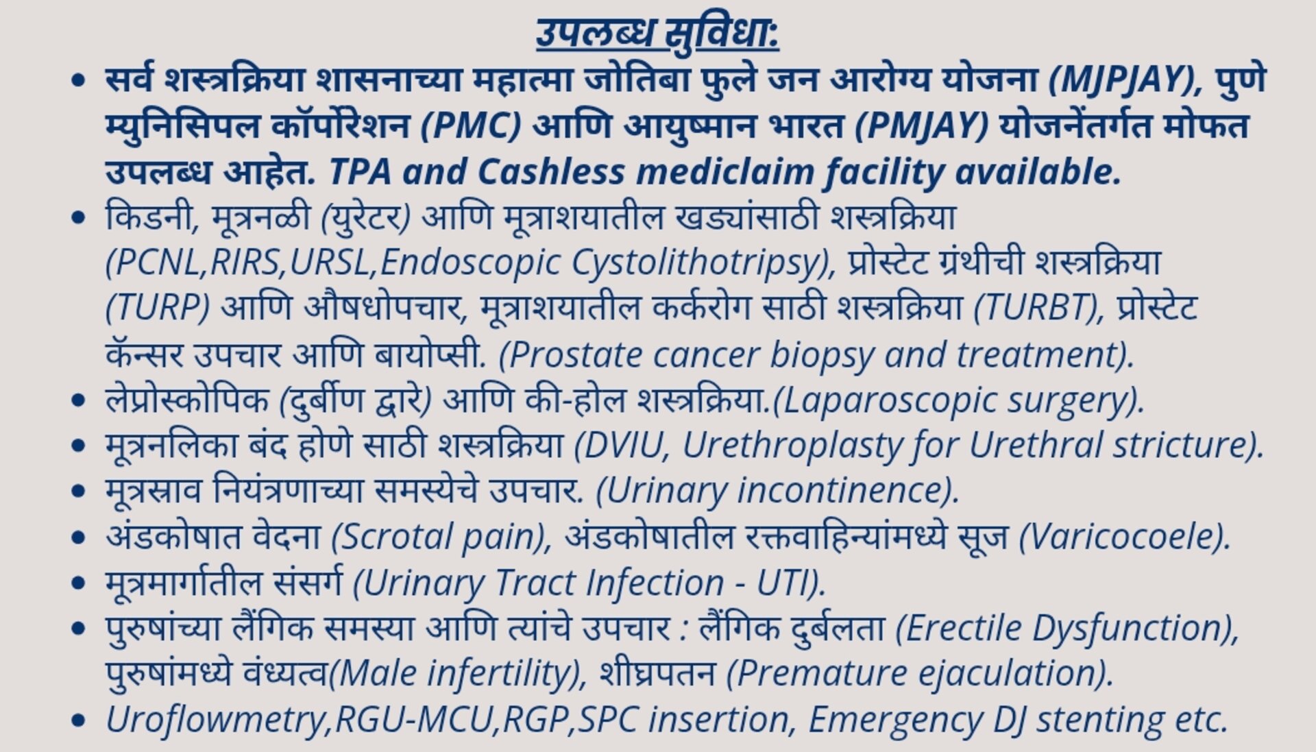 Read full testimonial - Dr. S K Palashडॉ. पळस सर खूपच चांगले युरोलॉजिस्ट आहेत. त्यांनी माझी समस्या अगदी नीट समजून घेतली आणि योग्य निदान करून योग्य औषधे दिली. ते रुग्णाशी खूप शांतपणे, प्रेमाने आणि समजून बोलतात. त्यामुळे मला पूर्णपणे विश्वास वाटला. त्यांच्या उपचारामुळे मला खूप आराम मिळाला. माझा संपूर्ण अनुभव खूप छान होता आणि मला वाटतं की युरोलॉजीची काहीही समस्या असेल तर डॉ. पळस सरांना नक्की भेटायला हवे.